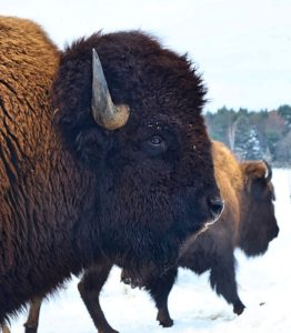 Bisons and Caribou remain central to the world-views and cultures of many First Peoples. Caribou hunting continues to be the mainstay of many Northern communities. However, economies based on bison hunting collapsed with the almost complete destruction of the herds in the late 1800’s. Despite this, the bison remains an important symbol of Indigenous identity. Today, the image of the bison is often found as a decorative feature on clothes, blankets, emblems and various accessories.