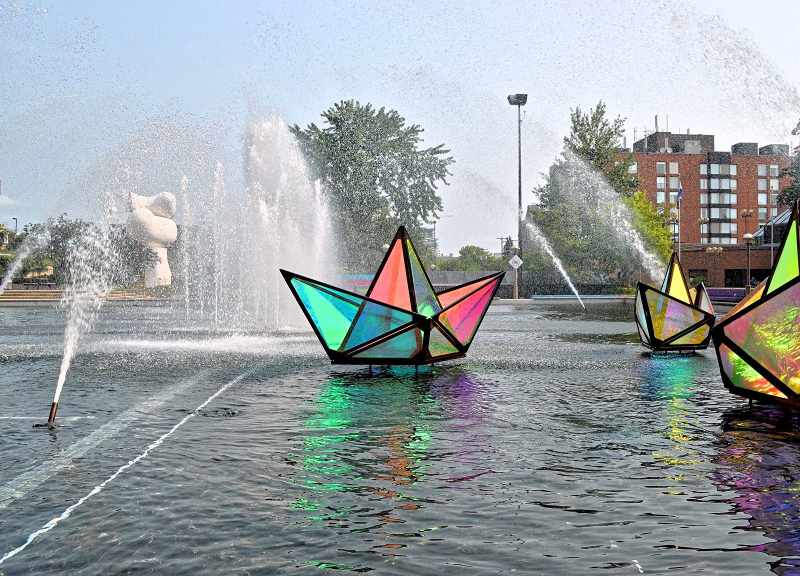 The sculpture “Je t’appellerai bateau-feu bateau lumière” was installed in the fountain in Portage Park during the 2019 version of the Cultural Trail.