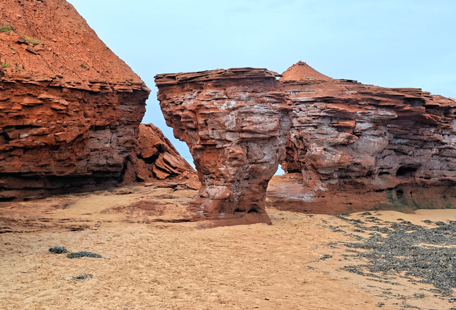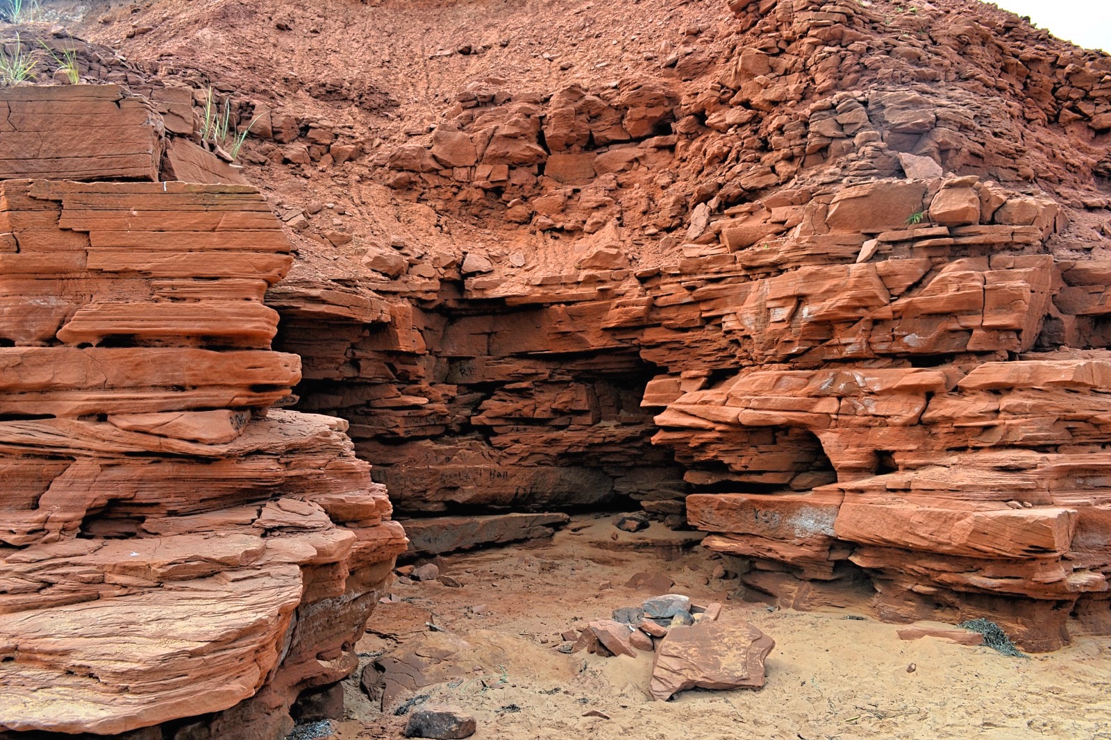 The red colour derives from the presence of iron in the worn red sandstone on the beach. As a result, the intensity of the red is proportional to the amount of iron present. Thunder Cove Beach is a hidden gem on Prince Edward Island if you want to see red sand.