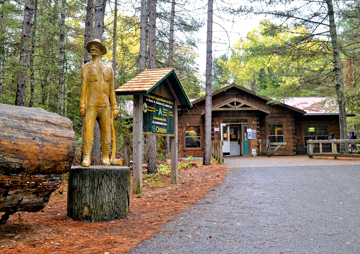 The trail honours Algonquin Park’s colourful and intriguing logging history. A guided tour of the outdoor exhibits and recreated logging camnp is available to visitors. The Logging Museum is open all year, with the exception of the winter months, when the bookstore and reception building are closed.
