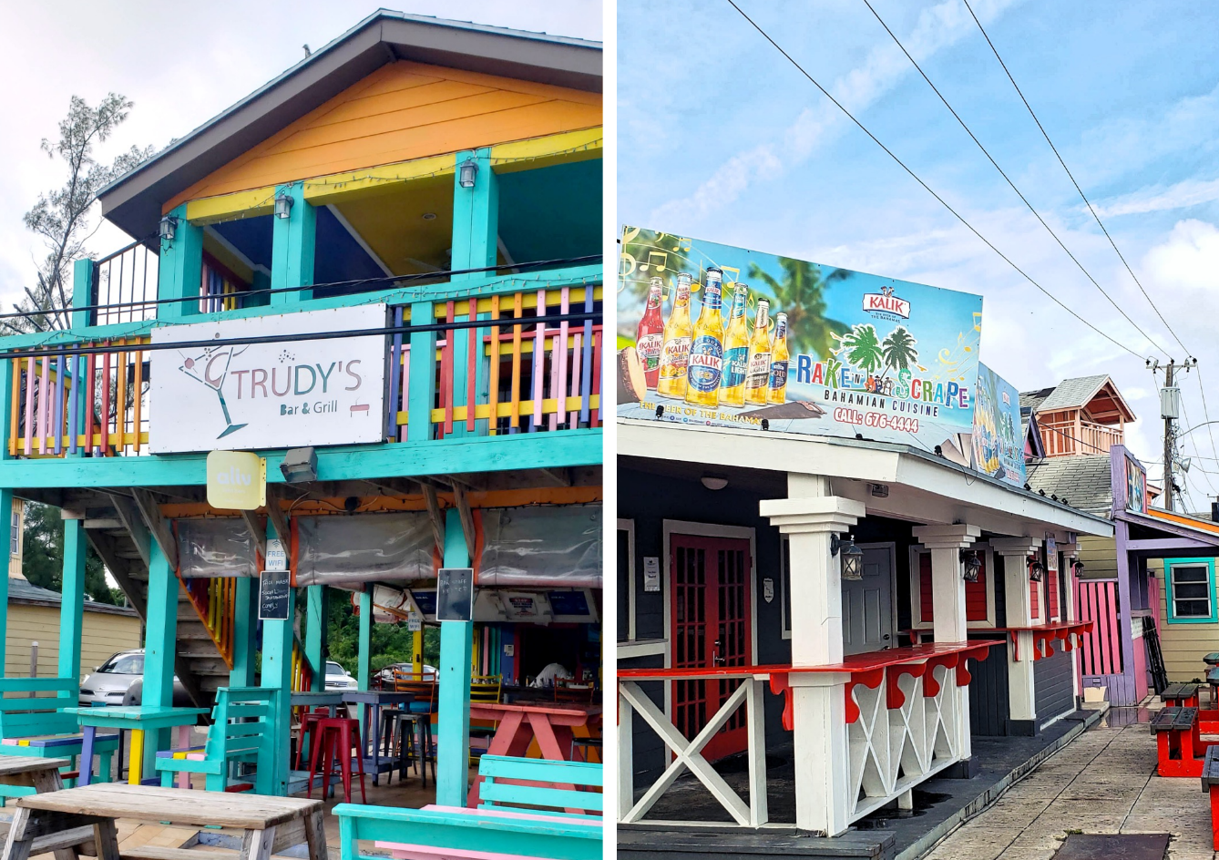 Fish and conch are the two featured options which can be experienced in many ways.  Conch salad and fritters are my top recommendations as well as grilled snapper.  To accompany your meal, try their sky juice, a blend of gin, coconut water and condensed milk.
