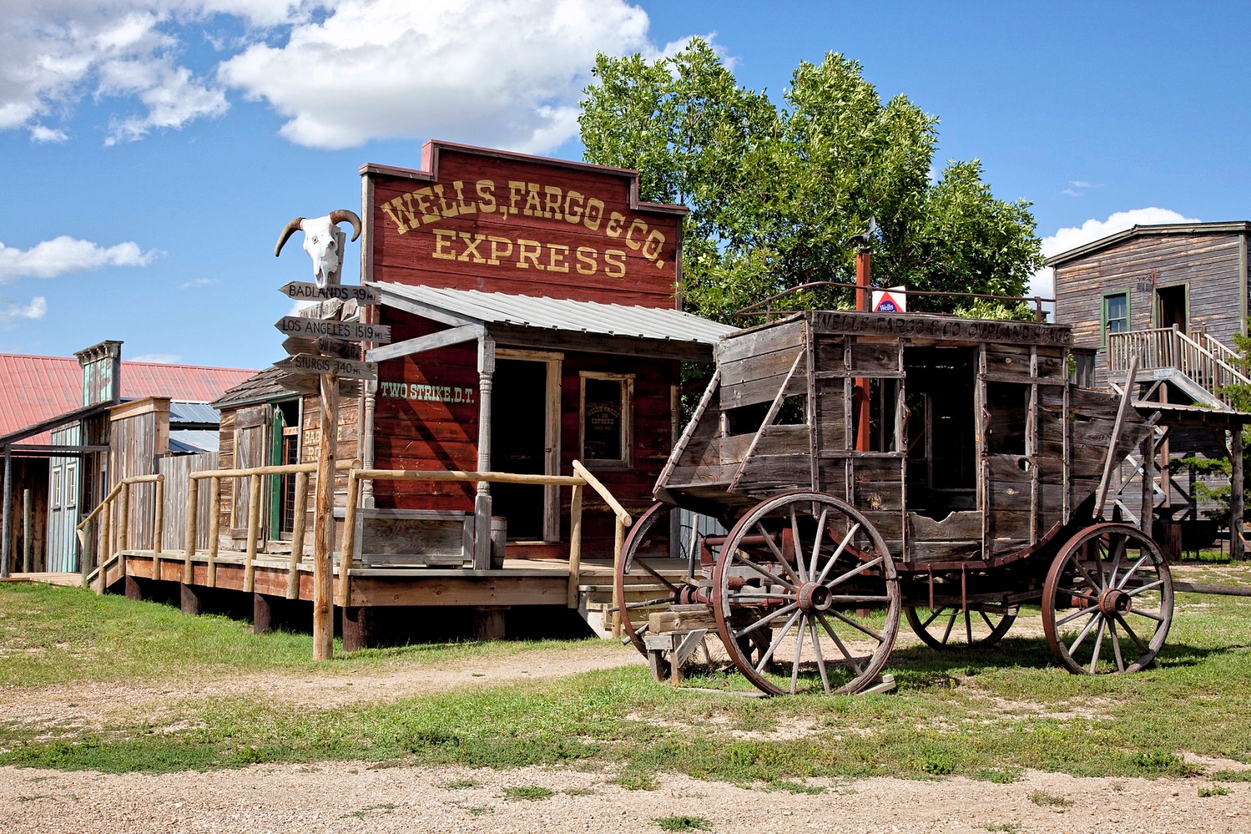 Explore over thirty buildings that are authentically furnished with hundreds of antiquities as you stroll down this town’s Main Street from the 1880s. Take in the expansive homestead’s undulating landscape and picture yourself living on the prairie. Memorabilia from the late champion rodeo bronc rider Casey Tibbs and other objects used in the filming of “Dances with Wolves” are also on display at the 1880 town.