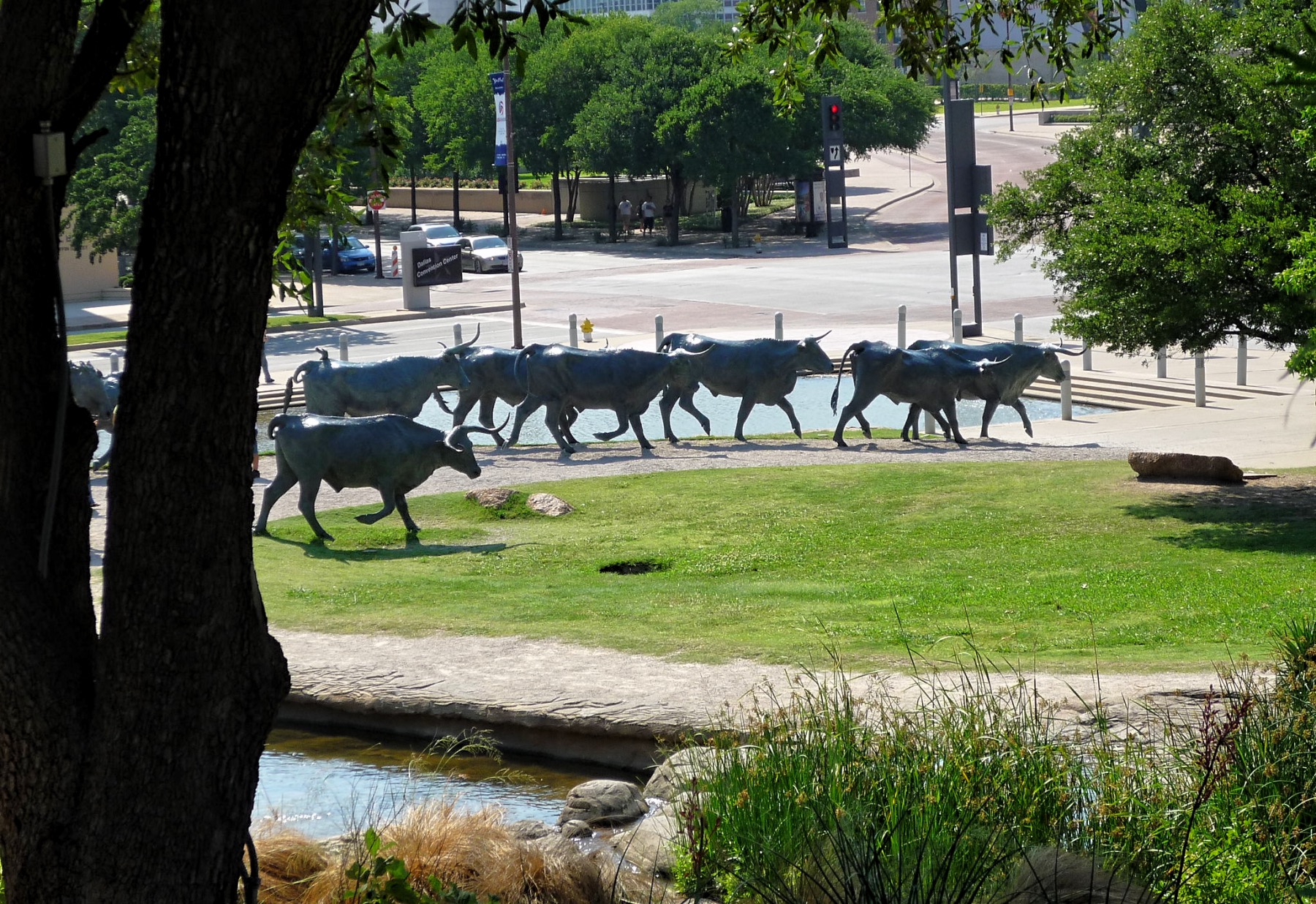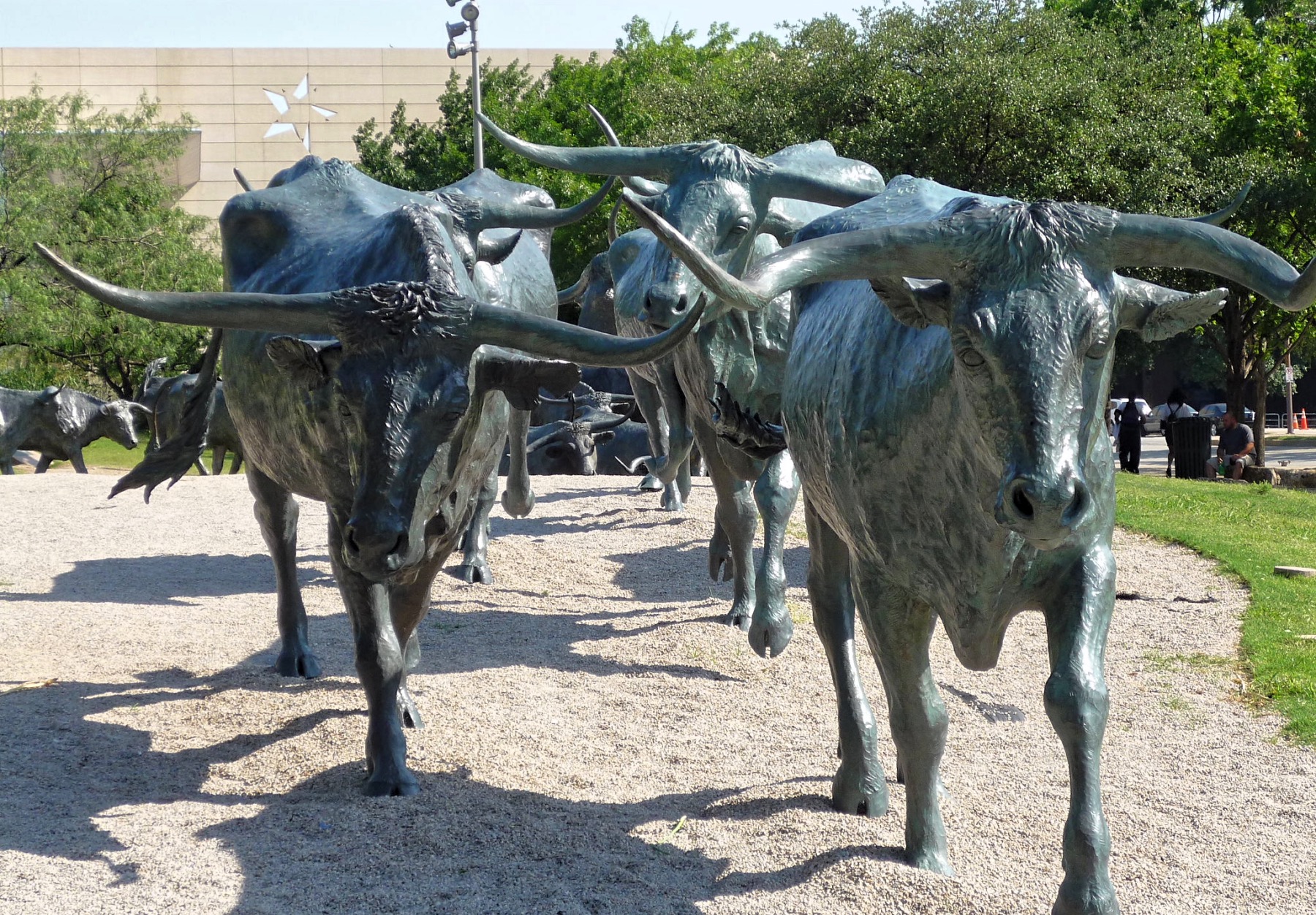 Located in the Convention Centre District in downtown Dallas, Texas, Pioneer Plaza is a sizable public park. It is a popular tourist destination with a sizable sculpture within. The Pioneer Park Cemetery, which houses the Confederate War Memorial, is located next to the square. When combined, they make up the Dallas central business district’s largest public open area.