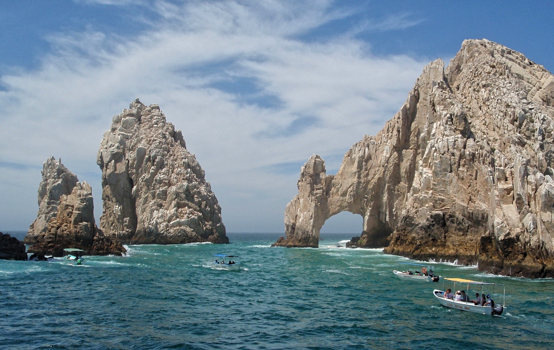 The unique granitic rock formation known as the “arch of Cabo San Lucas” is located at the southernmost point of Cabo San Lucas, which is the southernmost extremity of Mexico’s Baja California Peninsula. In the area, the arch is referred to as “El Arco,” which translates to “the arch” or “Land’s End.”