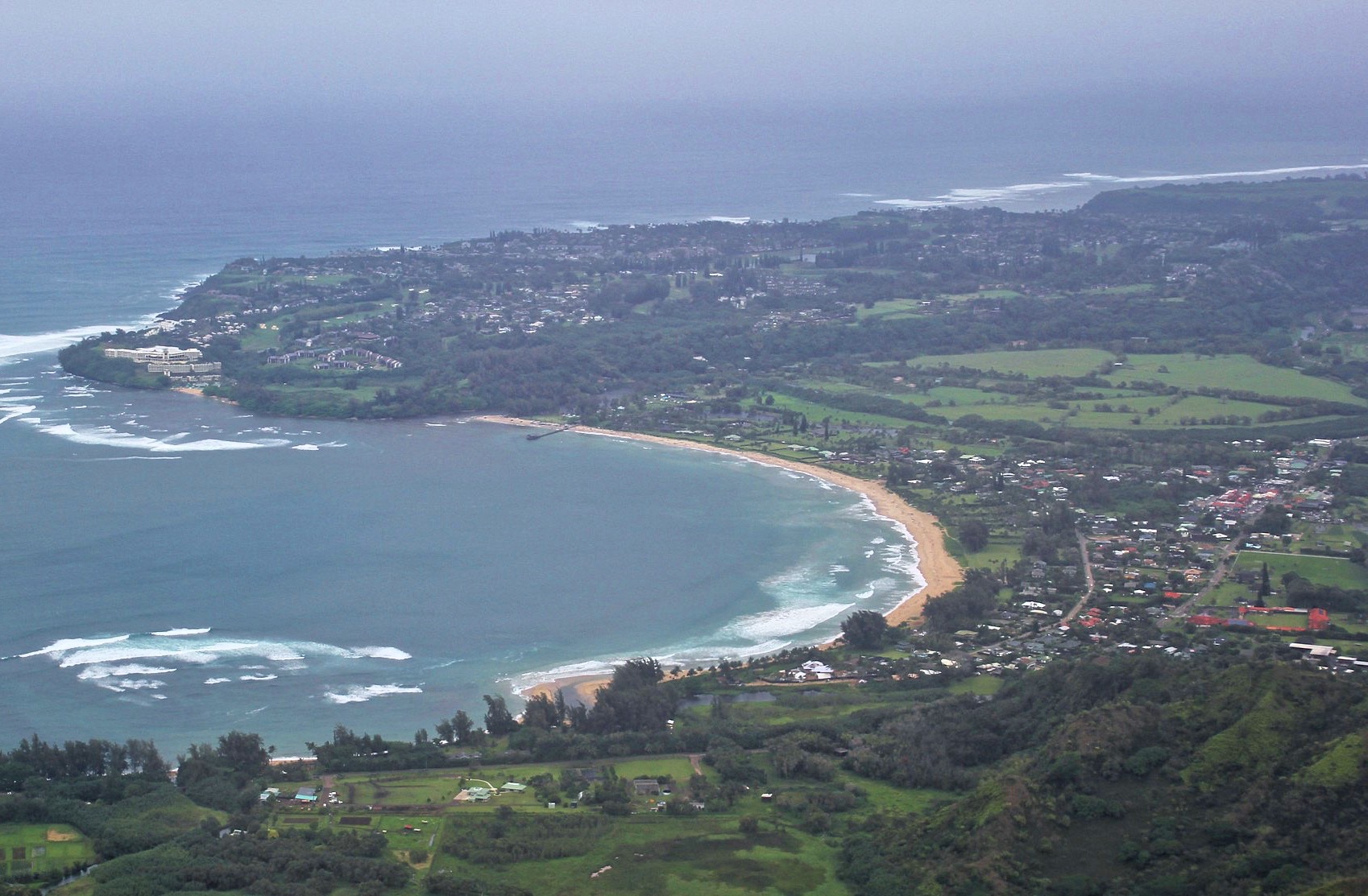 Hanalei Bay consists of nearly 2 miles (3.2 km) of beach, surrounded by mountains. In the summer, the bay offers excellent mooring for sailboats, stand up paddle boarding and swimming. The Princeville community overlooks from the northeast entrance to the bay of Hanalei River.