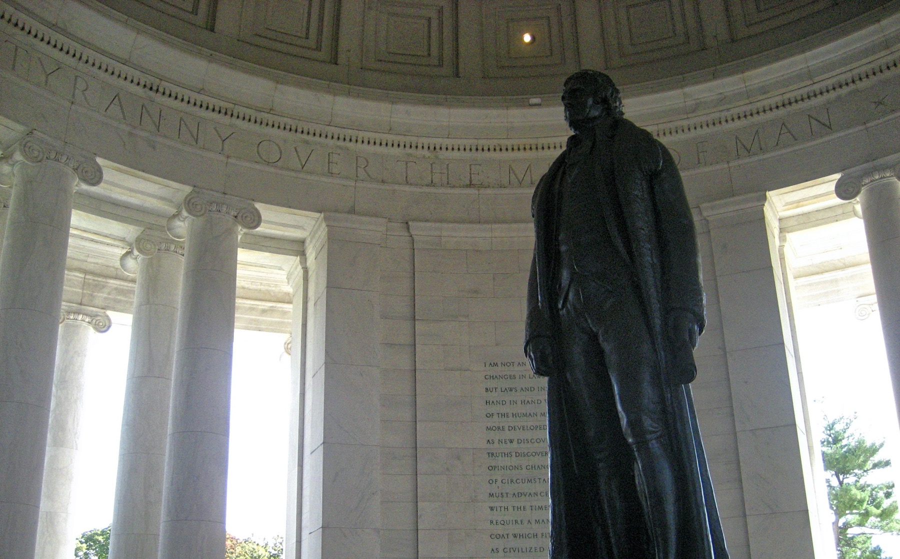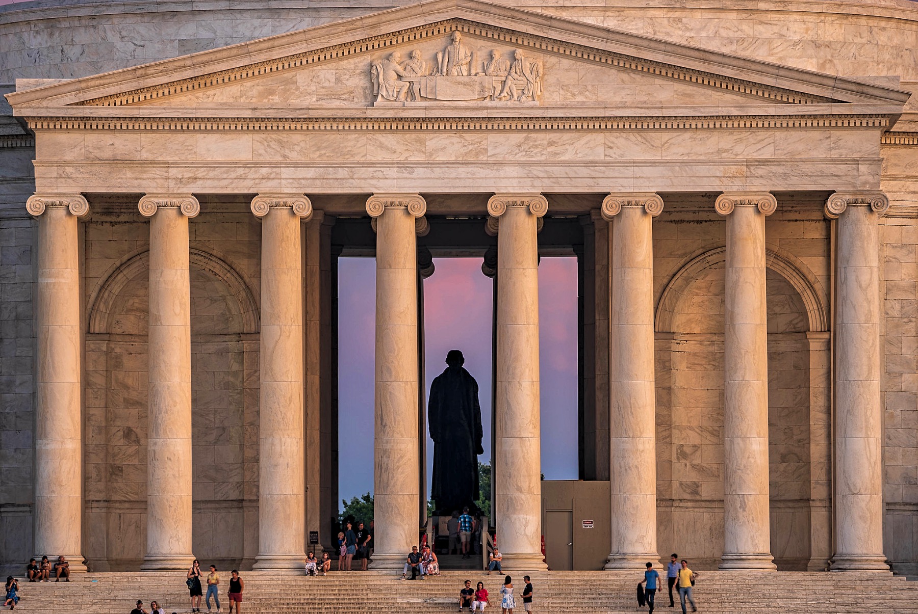 The Jefferson Memorial is a presidential memorial honouring Thomas Jefferson, the principal author of the US Declaration of Independence, a driving force behind the American Revolution, the founder of the Democratic-Republican Party, and the third president of the US, which was constructed in Washington, D.C. between 1939 and 1943.