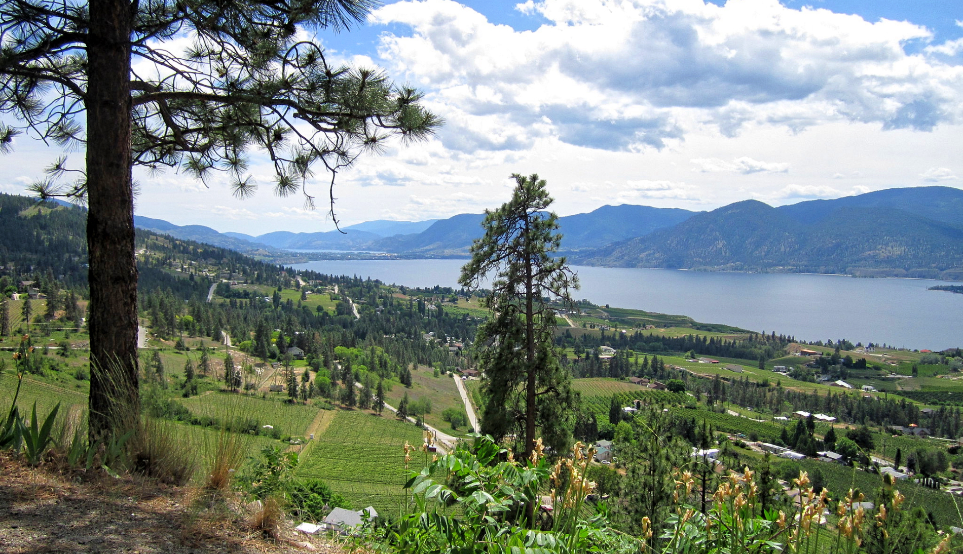 A lake called Okanagan Lake is located in British Columbia, Canada’s Okanagan Valley. The lake’s dimensions are 135 km long by 4–5 km wide, with a surface area of 348 km2. The Okanagan River empties into Skaha Lake at the south end of the lake by a canal that passes through Penticton.