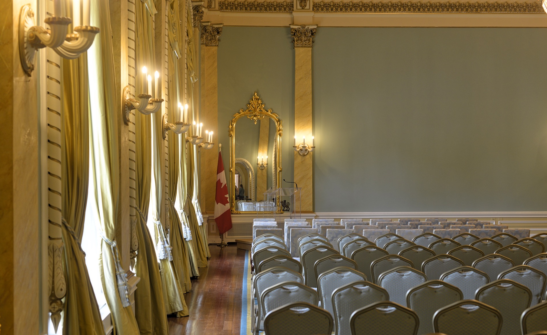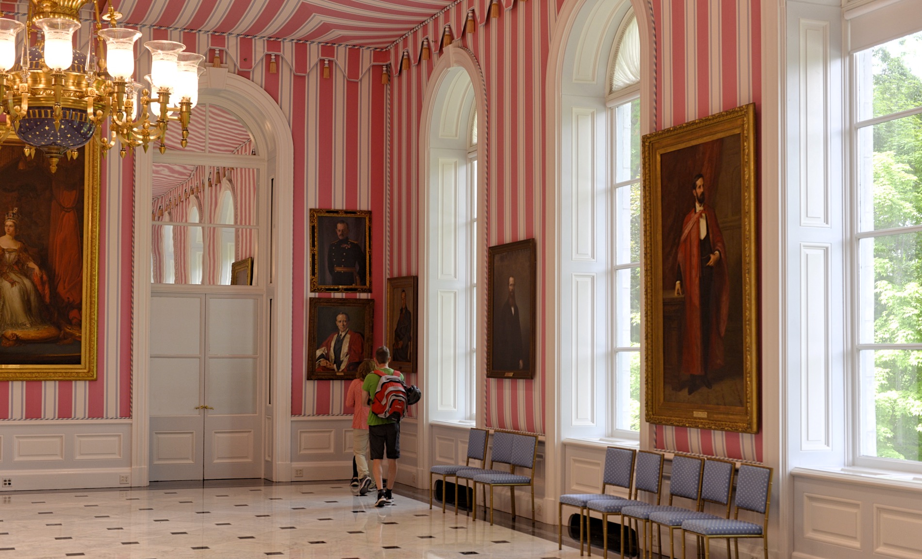 Rideau Hall is the official residence in Ottawa of both the governor general and the Canadian monarch. It is located in Canada’s capital on a 36-hectare estate at 1 Sussex Drive, with the main house including roughly 175 rooms spread across 9,500 square metres of gardens. Rideau Hall is located outside of Ottawa’s city centre.
