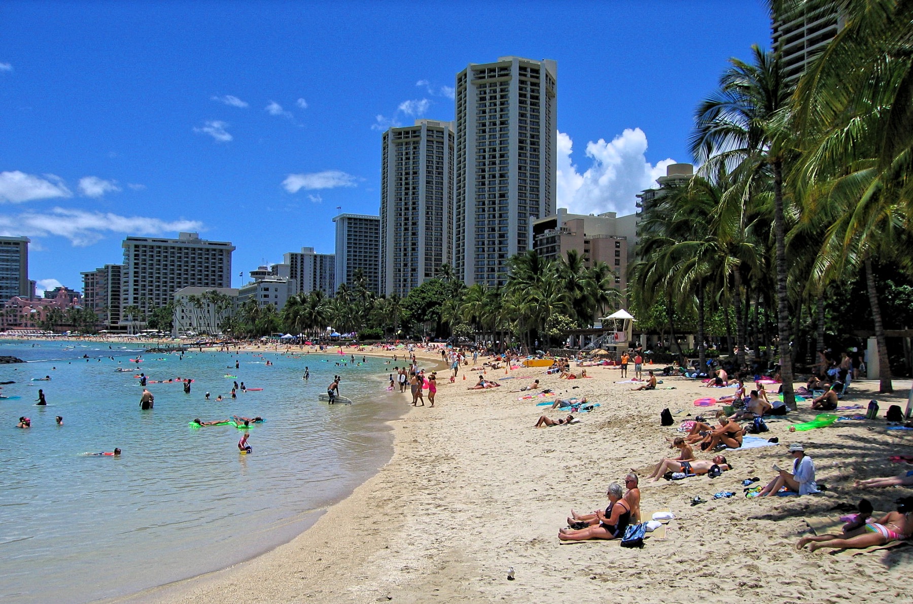 In the U.S. state of Hawaii, Waikiki is a neighbourhood and its name-brand beach located on the southern part of the island of OŻahu. Along with Queen’s Beach, Kuhio Beach, Gray’s Beach, Fort DeRussy Beach, and Kahanamoku Beach, the district has six beaches in total. Waikiki Beach is one of them.